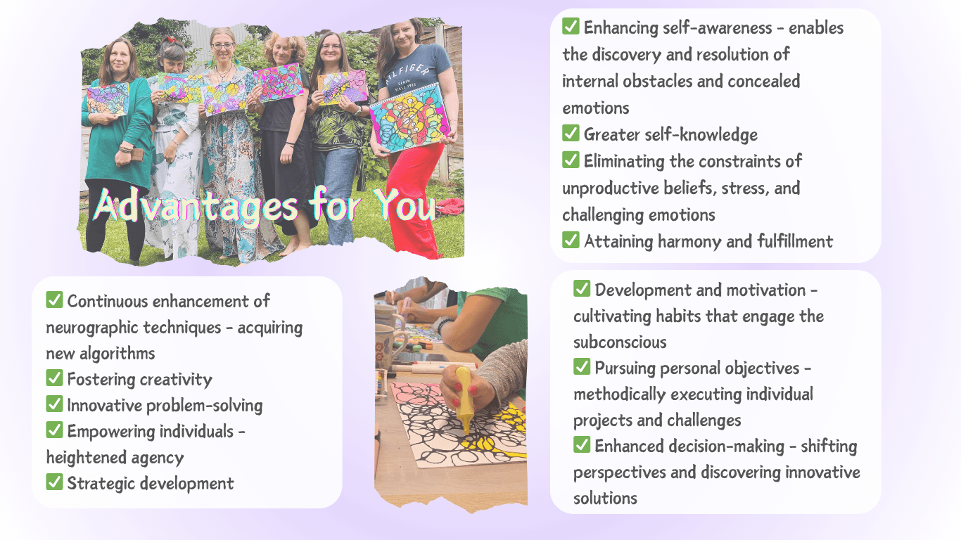 This is a creative space where Neurographica and NeuroArt come together for deeper self-discovery, inner transformation, growth and exploration of new Neurographica techniques.